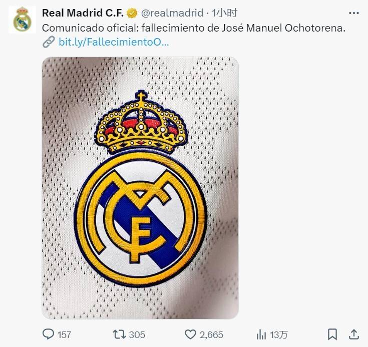 10月27日,皇家马德里俱乐部在官方发文,对球队传奇门将何塞-曼努埃尔-奥乔托雷纳的去世表示哀悼。这位前皇马球员于当地时间10月26日去世,终年64岁。除了皇马之外,瓦伦西亚等球队,也在官方对奥乔托雷纳的去世表示哀悼。